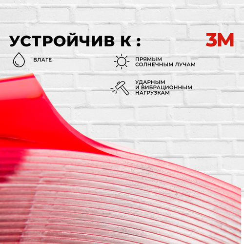 Двусторонняя клейкая лента 3M прозрачная — отличная альтернатива всем средствам механического соединения. Эта сверхпрочная лента, на обе стороны которой нанесён акриловый клей, позволяет надёжно закрепить детали, не нарушая целостность поверхностей!