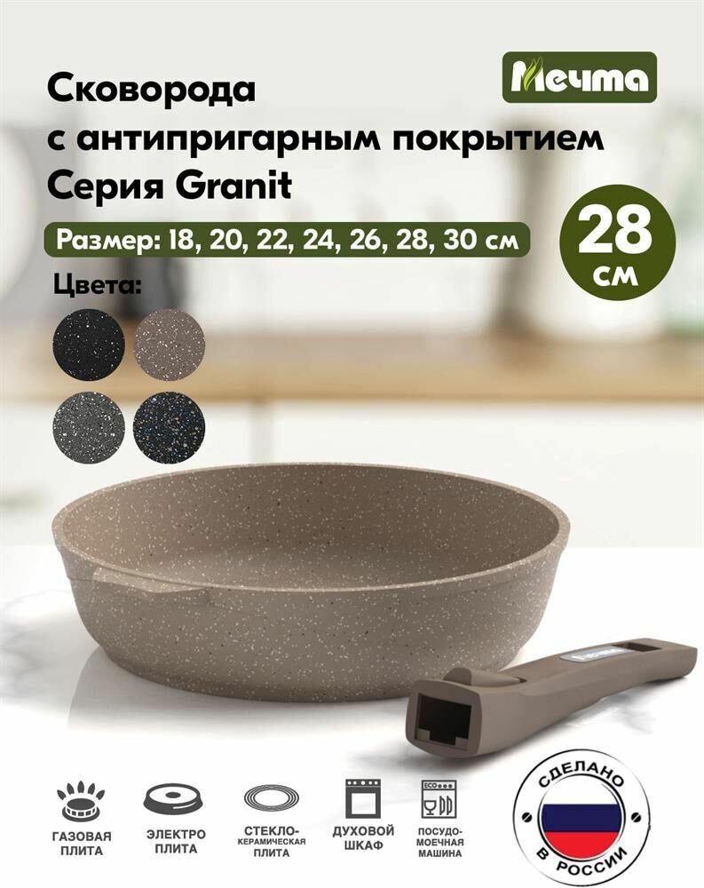 Сковорода 028806 со съемной ручкой. «Гранит brown» 28см: сравнение цен, характеристики, фото, актуальное наличие и цены.