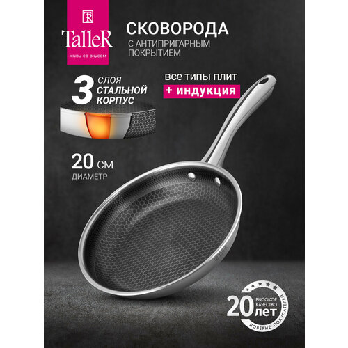 Сделайте свой выбор в пользу надёжности и качества! Эта сковорода — незаменимая посуда для кухни, которая сочетает в себе профессиональное качество и удобство повседневного использования. Сковорода TalleR станет вашим верным помощником в приготовлении вкусных и здоровых блюд.