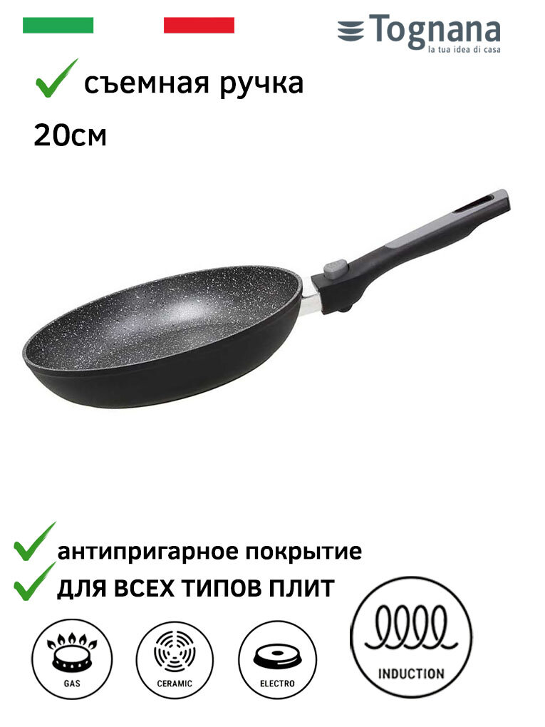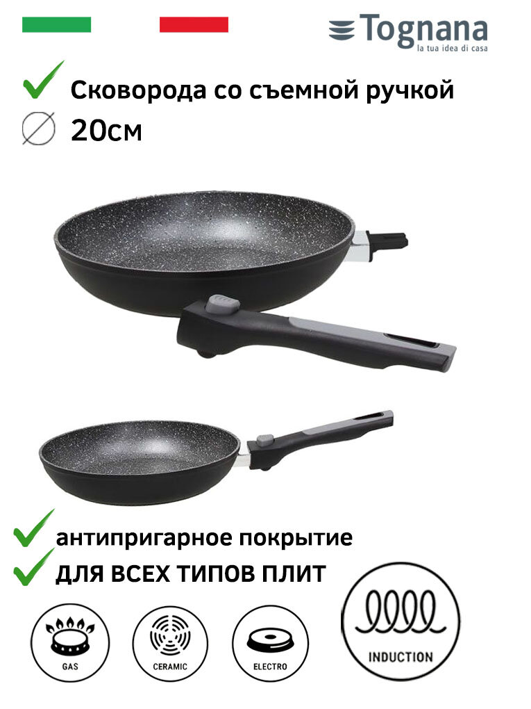 Сковорода 20см. со съемной ручкой, из литого алюминия, антипригарное покрытие. TOGNANA Space Saving Collection: сравнение цен, характеристики, фото, актуальное наличие и цены.