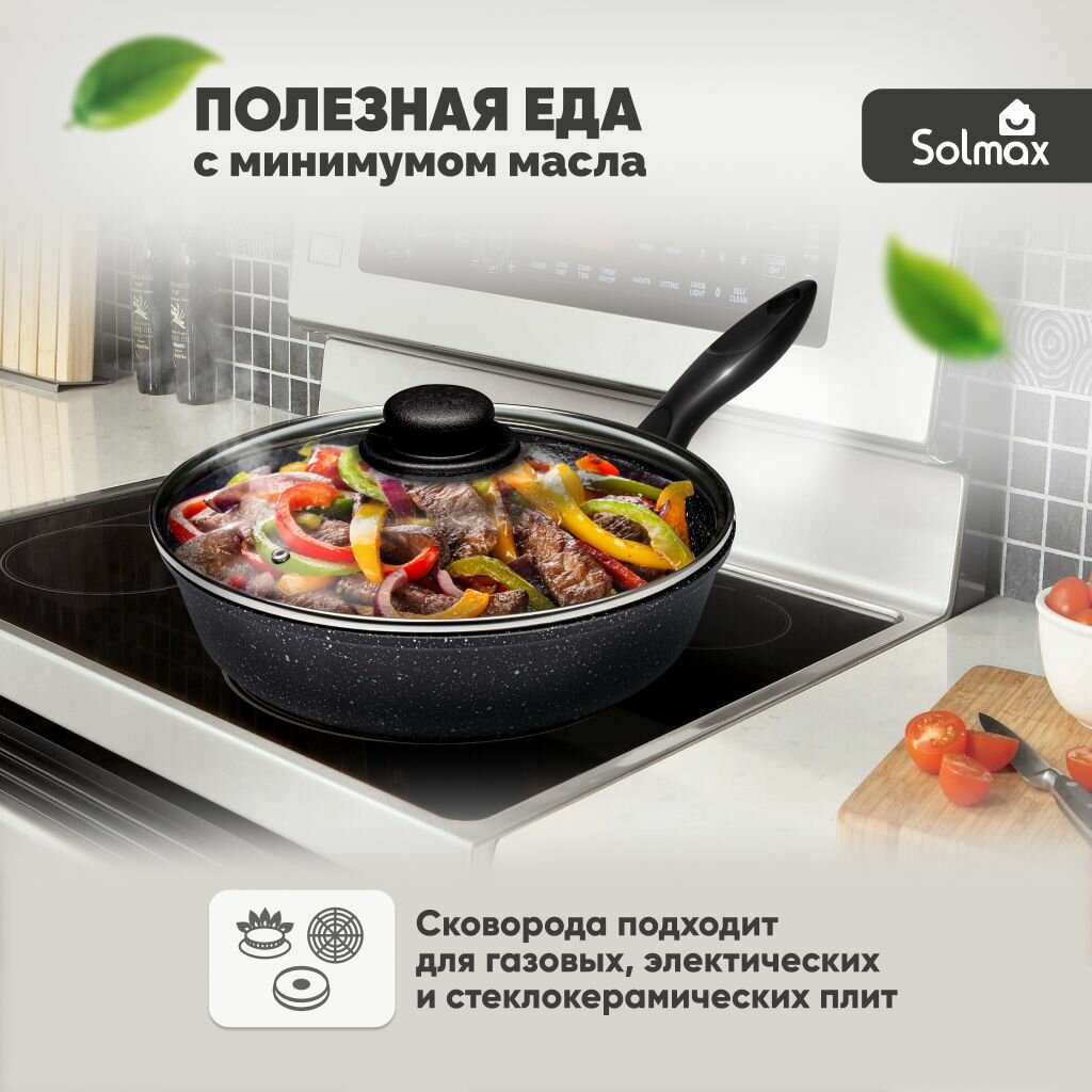 Купить Сковорода 24 см глубокая с крышкой, антипригарное покрытие Solmax&Kitchen с доставкой по всей России.