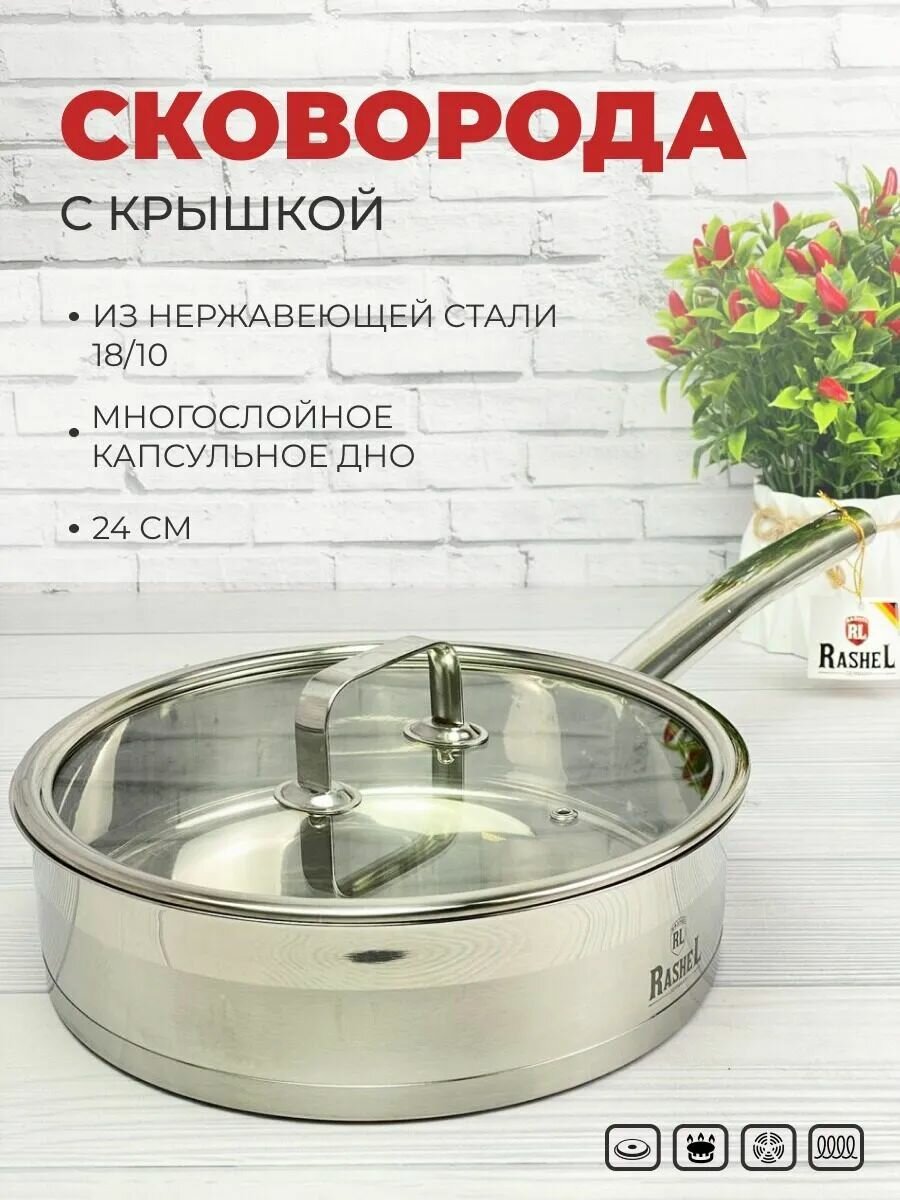 Сковорода 24 см профессиональная из нержавеющей стали с мерной шкалой: сравнение цен, характеристики, фото, актуальное наличие и цены.