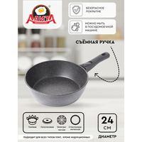 Купить Сковорода 24 см со съемной ручкой антипригарная глубокая, литая алюминиевая, Природный камень с доставкой по всей России. Сковорода 24 см со съемной ручкой антипригарная глубокая, литая алюминиевая, Природный камень: сравнение цен, характеристики, фото, актуальное наличие и цены.