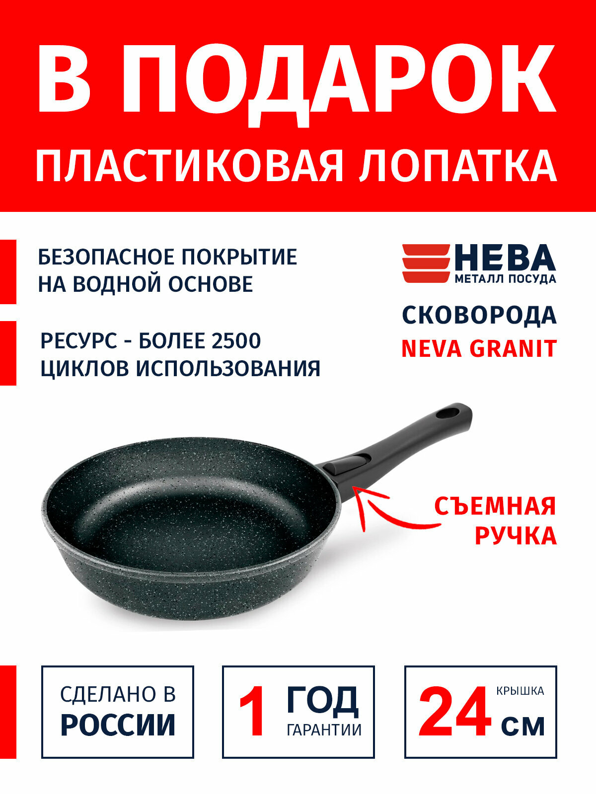 Сковорода 24см съемная ручка нева металл посуда Neva Granite с антипригарным покрытием, Россия + Лопатка в подарок: сравнение цен, характеристики, фото, актуальное наличие и цены.