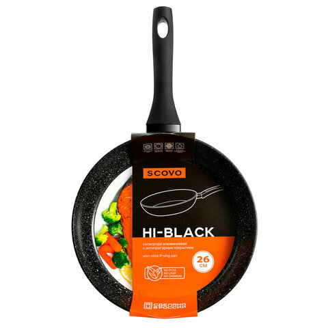 Сковорода 26 см, антипригарное покрытие, soft-touch ручка, SCOVO Hi-Black, HB-004: сравнение цен, характеристики, фото, актуальное наличие и цены.