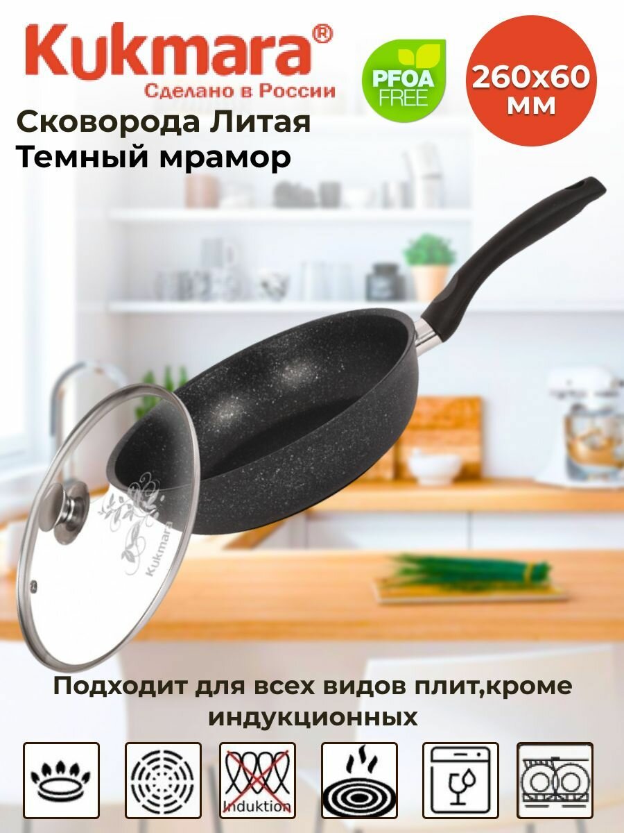 Купить Сковорода 260/60мм с ручкой, стекл. крышкой, АП (темный мрамор) с доставкой по всей России. Сковорода 260/60мм с ручкой, стекл. крышкой, АП (темный мрамор): сравнение цен, характеристики, фото, актуальное наличие и цены.
