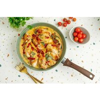 Сковорода изготовлена из высококачественного пищевого литого алюминия, который равномерно нагревается и не деформируется со временем. Благодаря этому, вы сможете готовить разнообразные блюда с минимальными затратами энергии.