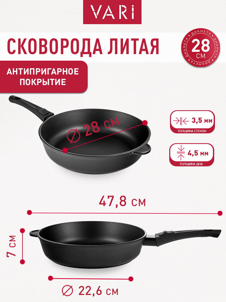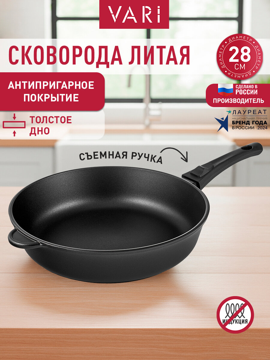 Купить Сковорода 28 см, литая со съемной ручкой и антипригарным покрытием, LITTA с доставкой по всей России. Сковорода 28 см, литая со съемной ручкой и антипригарным покрытием, LITTA: сравнение цен, характеристики, фото, актуальное наличие и цены.