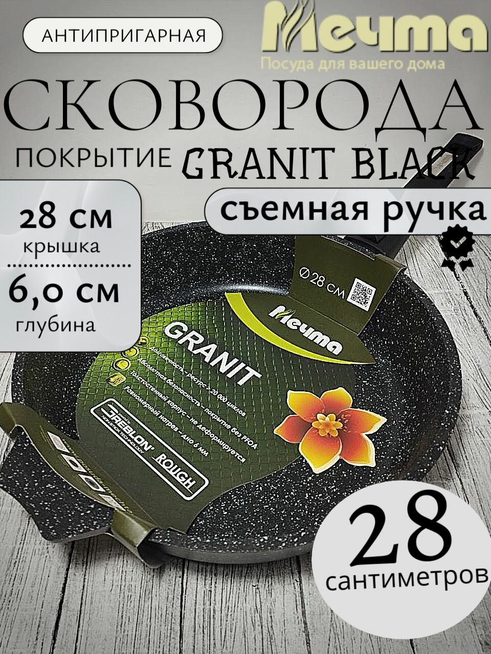 Сковорода 28 см с антипригарным покрытием мечта со съемной ручкой, покрытие гранит: сравнение цен, характеристики, фото, актуальное наличие и цены.