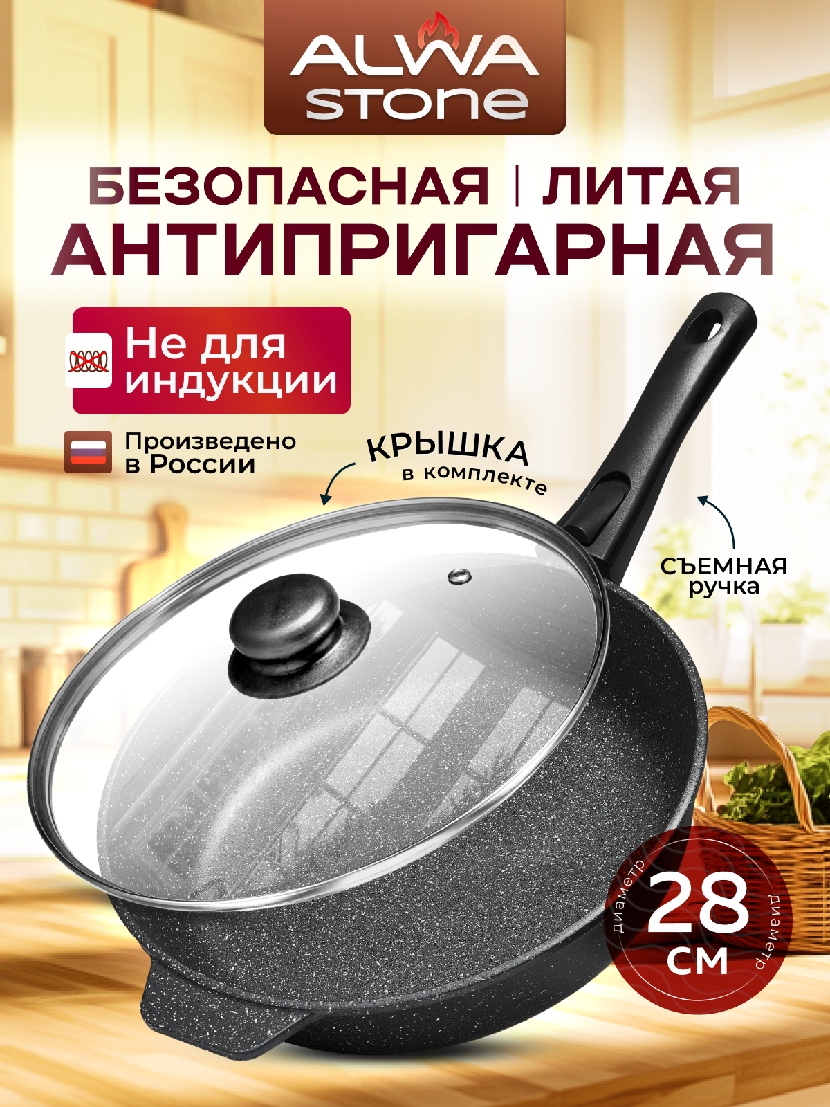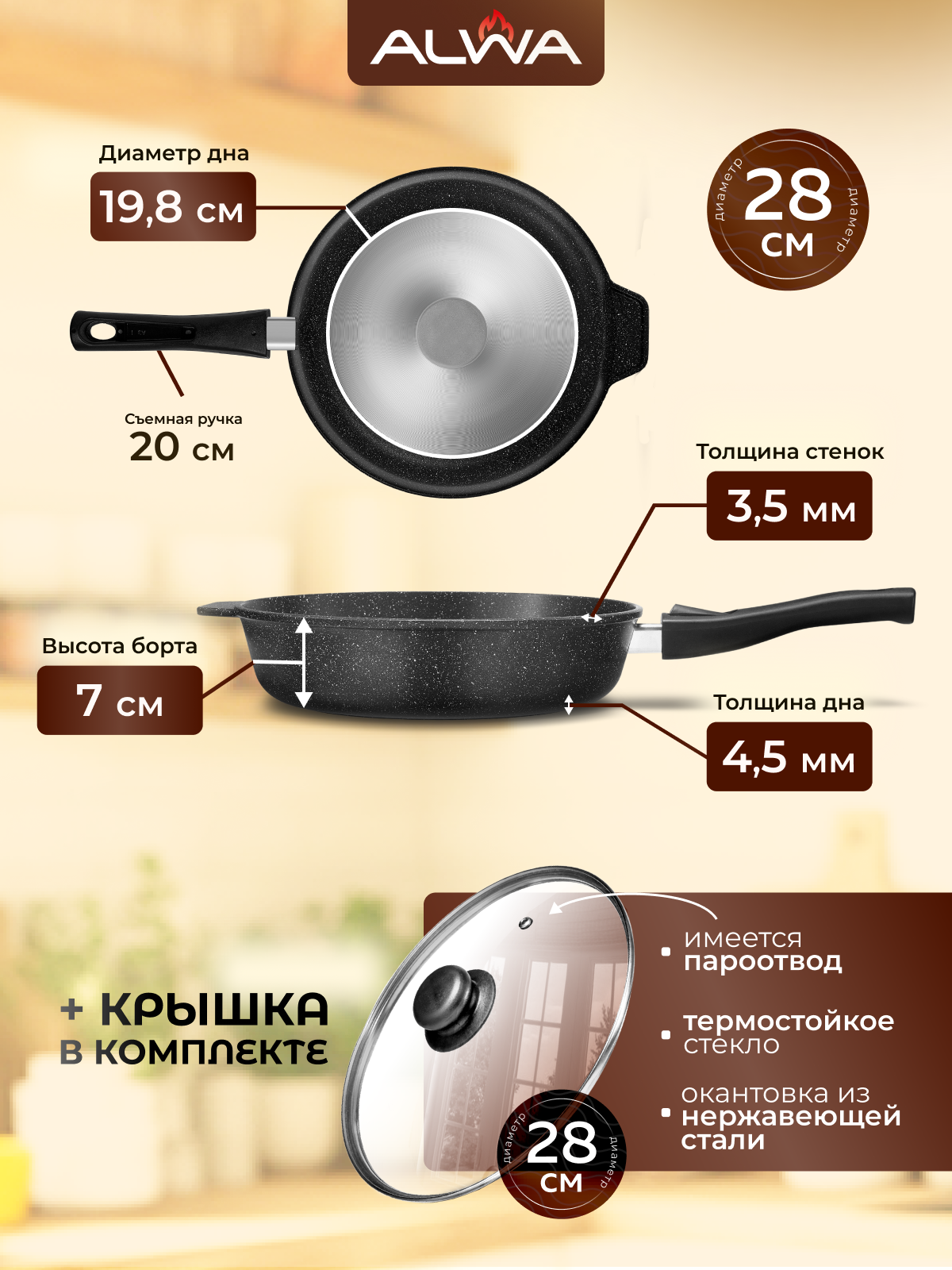 Сковорода 28 см с крышкой ALWA Stone антипригарная литая со съемной ручкой: сравнение цен, характеристики, фото, актуальное наличие и цены.