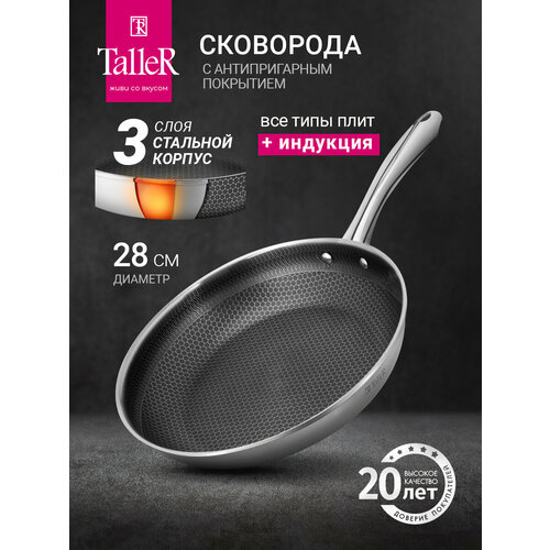 Сделайте свой выбор в пользу надёжности и качества! Эта сковорода — незаменимая посуда для кухни, которая сочетает в себе профессиональное качество и удобство повседневного использования. Сковорода TalleR станет вашим верным помощником в приготовлении вкусных и здоровых блюд.