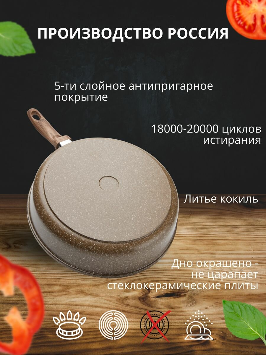Купить Сковорода 28см «Премьер» серии «Granit Brown» из литого алюминия с антипригарным покрытием, можно мыть в посудомоечной машине с доставкой по всей России.