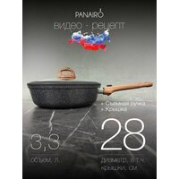 Сковорода 28см с крышкой и съемной ручкой Панейро