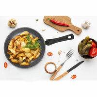 Каменное антипригарное покрытие безвредно, не содержит PFOA — перфтороктановой кислоты, оно сделано из натуральных минералов, не выделяющих вредных веществ. Это гарантирует приготовление здоровой пищи, позволяет безопасно жарить при высоких температурах, не выделяет опасные канцерогенные вещества.