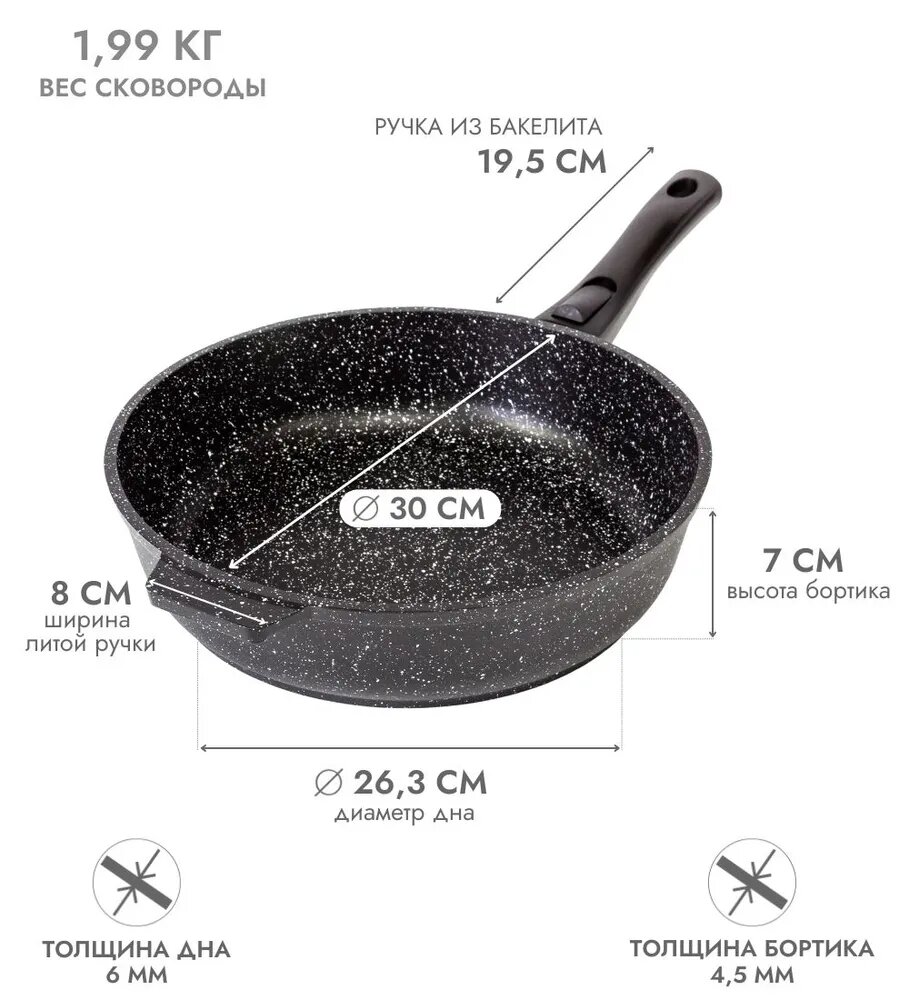 Сковорода 30 см с 7-слойным сверхпрочным антипригарным ЭКО покрытием ГРАНИТ, съёмная ручка: сравнение цен, характеристики, фото, актуальное наличие и цены.