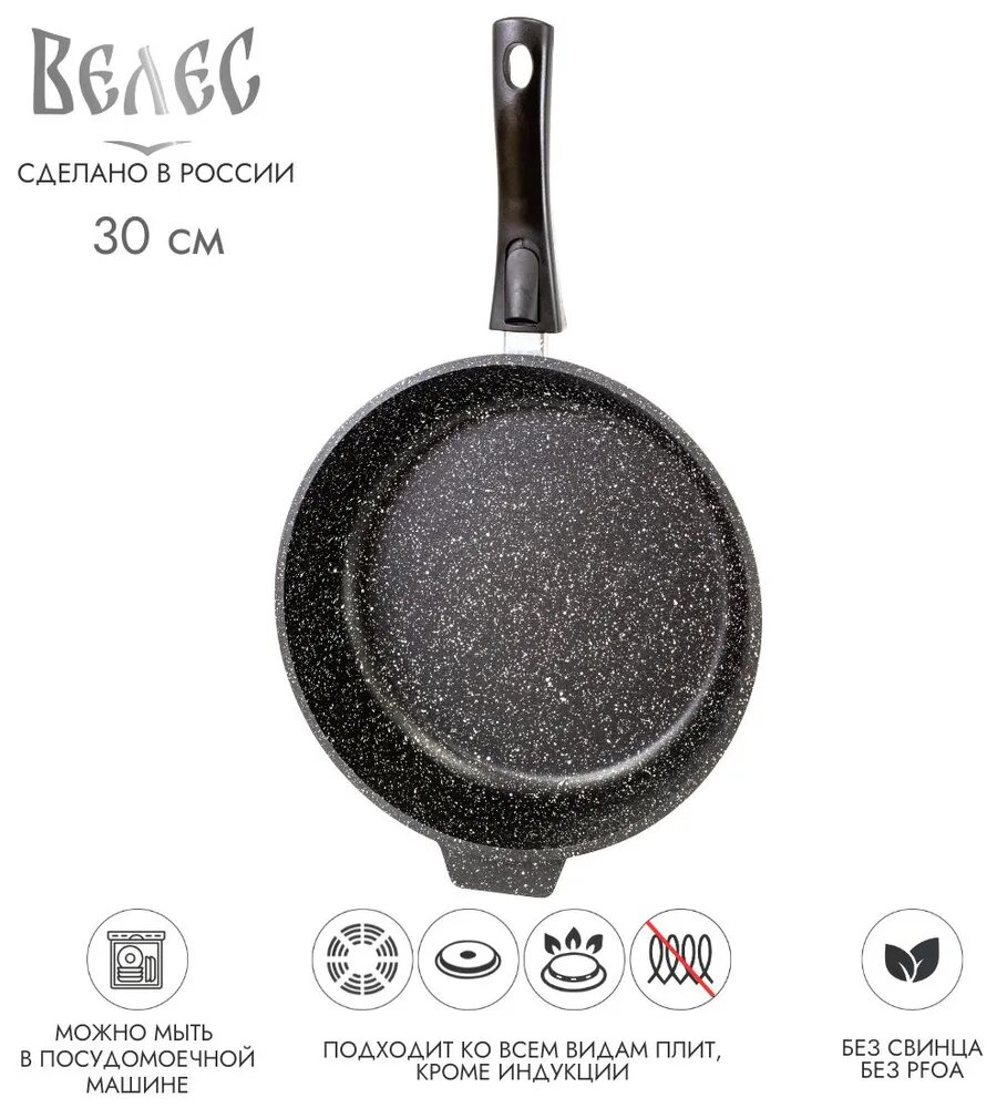 Купить Сковорода 30 см с 7-слойным сверхпрочным антипригарным ЭКО покрытием ГРАНИТ, съёмная ручка с доставкой по всей России.