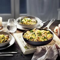 Сковорода серии Alba отличается повышенной надежностью. С ее помощью Вы сможете быстро и качественно приготовить Ваши любимые блюда. При этом Вам не нужно постоянно стоять у плиты, поскольку усиленное антипригарное покрытие Keravis предотвращает пригорание пищи. Уплотненные стенки толщиной 4.5 мм способствуют равномерному распределению тепла и качественному приготовлению продуктов. Ballarini– настоящие революционеры в производстве антипригарной посуды. Основанная 130 лет назад Ballarini из небольшой металлической мастерской превратилась в компанию, которая к 1930-м производила несколько тысяч различных позиций: от сковородок до столовых приборов и сервизов. Когда в 60-х годах прошлого века только начали появятся технологии производства антипригарной посуды, компания сразу же внедрила их в свое производство. И в наше время итальянский бренд отличается постоянным использованием новых, собственных производственных технологий для создания антипригарной посуды. Посуда Ballrini отвечает высочайшим стандартам качества, экологична, абсолютно безопасна и долговечна. Все это в совокупности с продуманным дизайном и эргономичностью позволяет продукции этого бренда оставаться на кухнях домохозяек и профессиональных поваров уже многие годы.