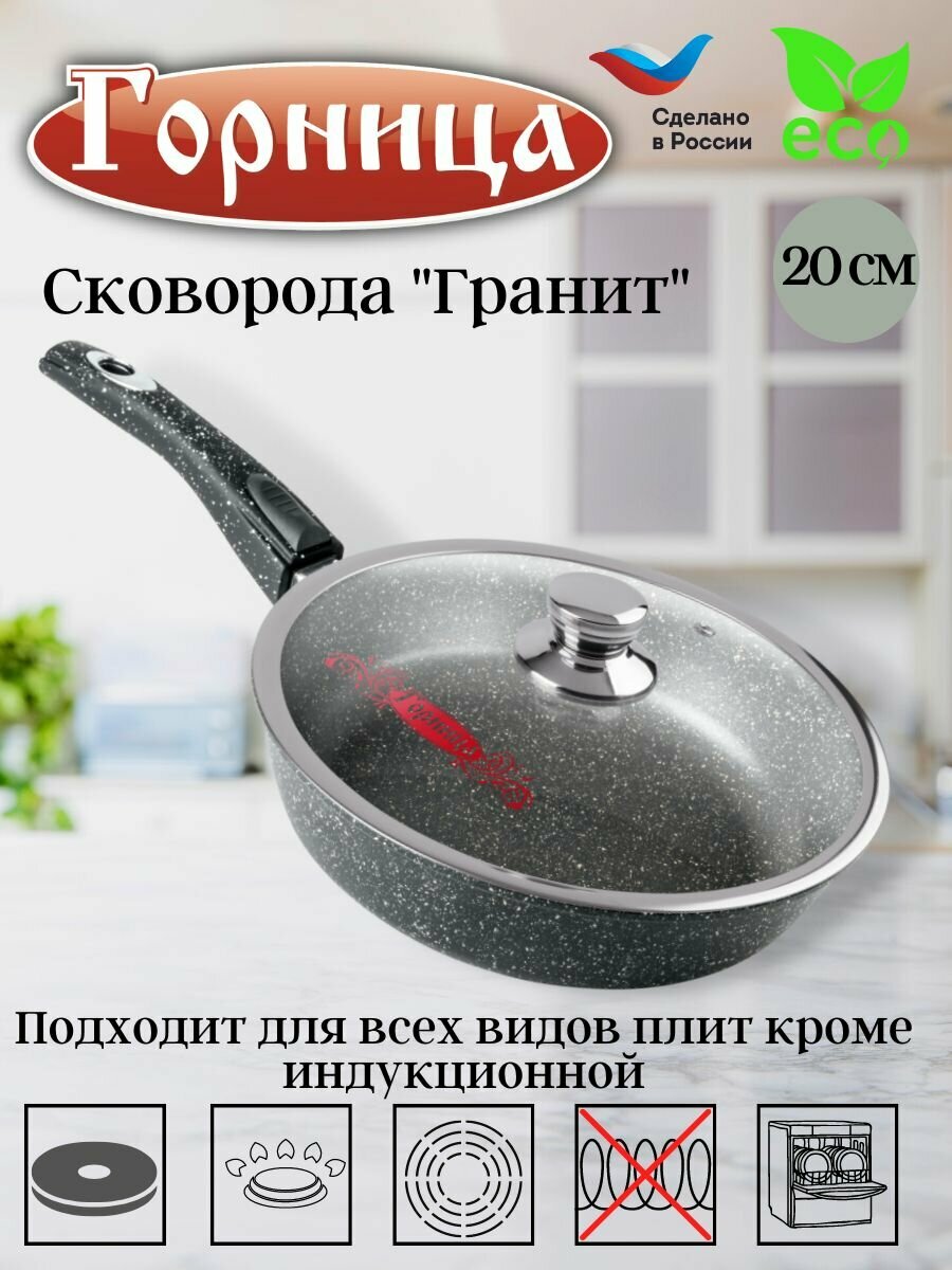 Сковорода алюминиевая 20 см Горница, Гранит, антипригарное покрытие, съемная ручка с крышкой: сравнение цен, характеристики, фото, актуальное наличие и цены.