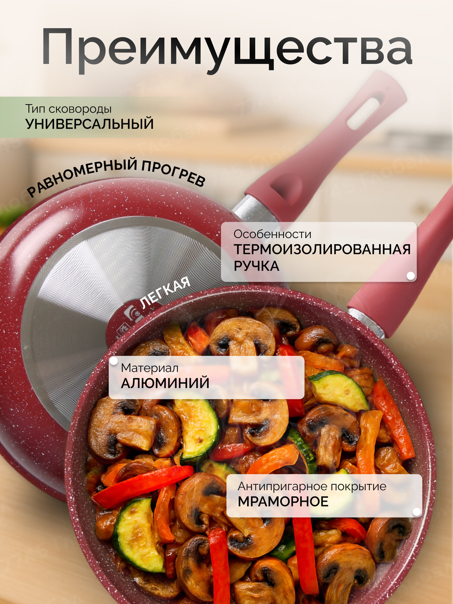 Сковорода антипригарная алюминиевая PERFECTO LINEA Cook&Fun 55-265812, 26 см, бургундия: сравнение цен, характеристики, фото, актуальное наличие и цены.