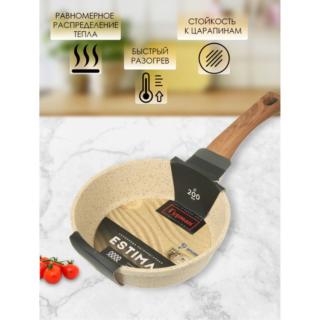Купить Сковорода алюминий, 20 см, антиприг, Гурман, Estima, беж, ГМ2001 ЭБИ, индукц с доставкой по всей России.
