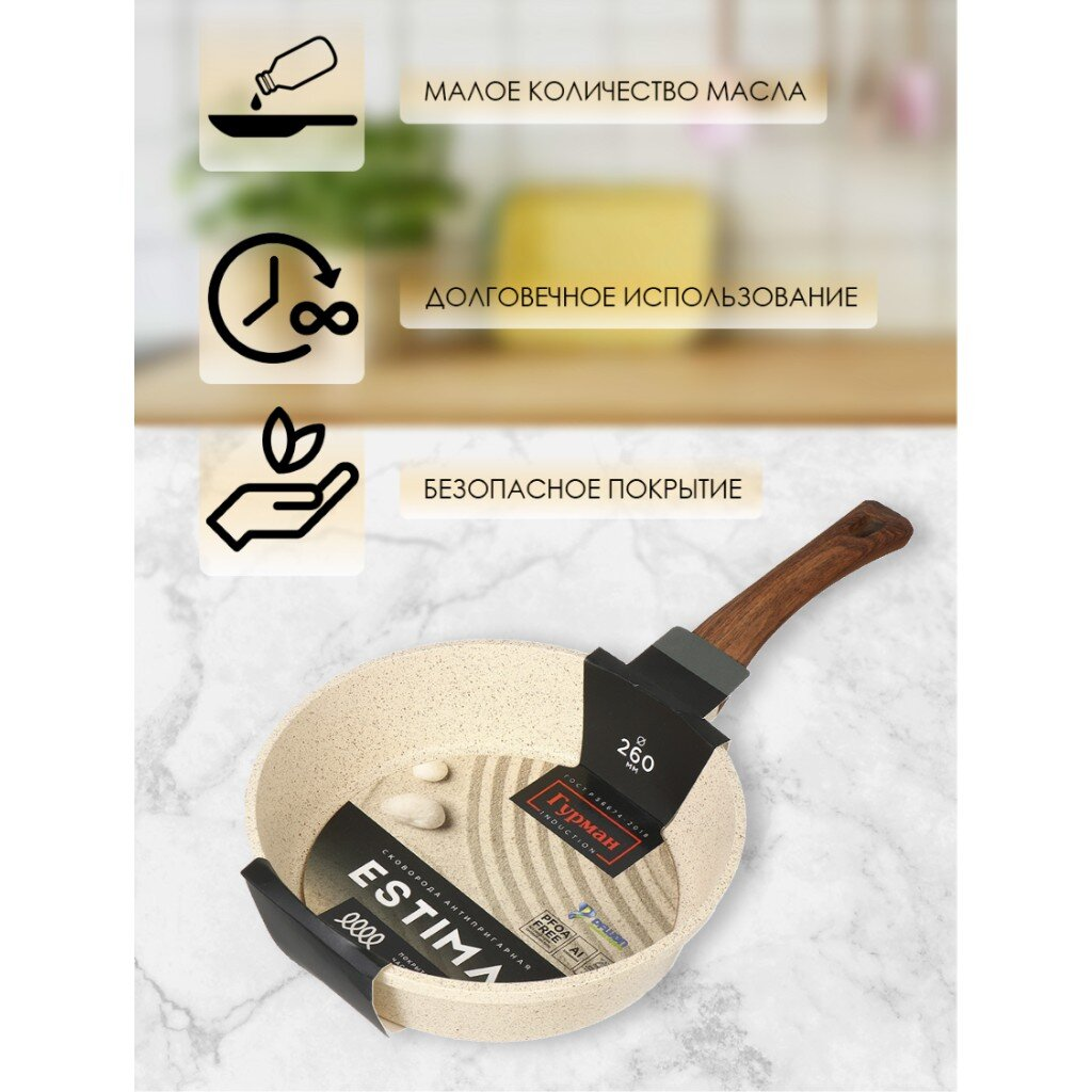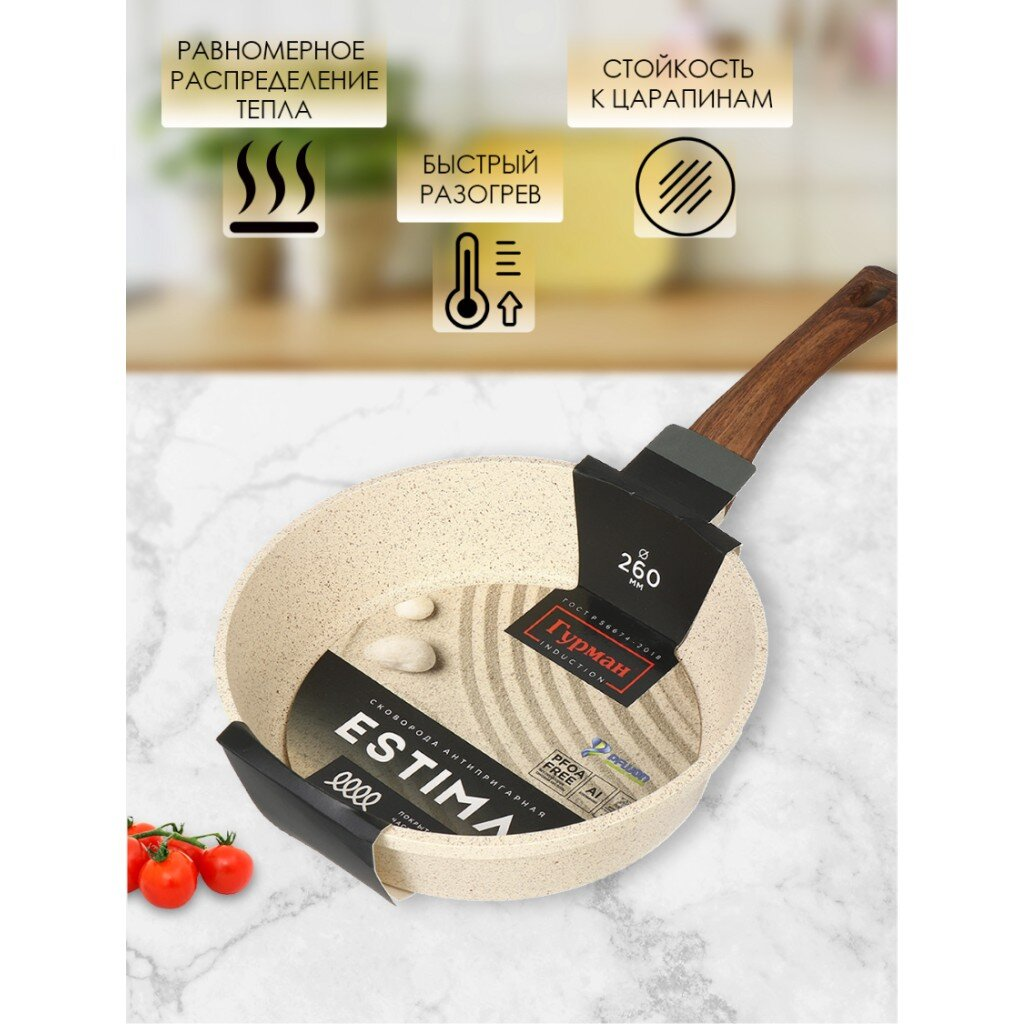 Сковорода алюминий, 26 см, антиприг, Гурман, Estima, беж, ГМ2601 ЭБИ, индукц: сравнение цен, характеристики, фото, актуальное наличие и цены.