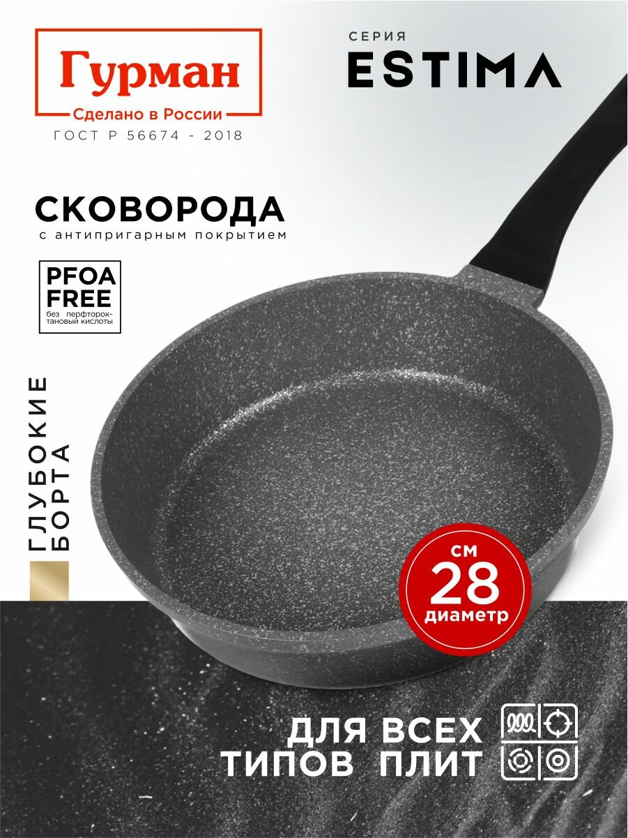 Сковорода глубокая 28 см с антипригарным покрытием, индукция, Гурман Estima: сравнение цен, характеристики, фото, актуальное наличие и цены.