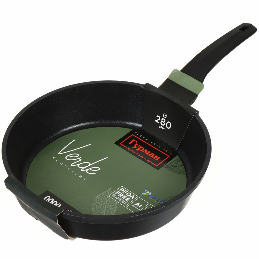 Купить Сковорода алюминий, 28 см, антипригарное покрытие, Гурман, Verde, черная, ГМ2801 ВИ, индукция с доставкой по всей России.