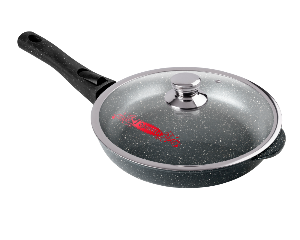 Купить Сковорода алюминий 28 см, антипригарное покрытие, Горница съемная ручка с крышкой Гранит с доставкой по всей России.