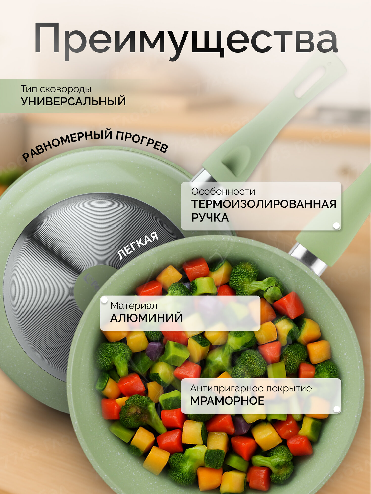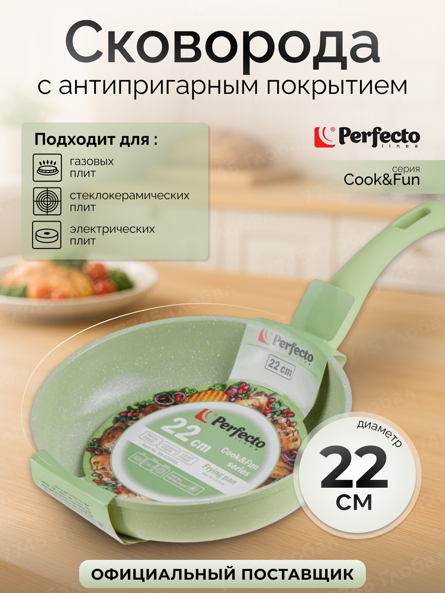 Сковорода антипригарная алюминиевая PERFECTO LINEA Cook&Fun 55-220201, 22 см, зеленая: сравнение цен, характеристики, фото, актуальное наличие и цены.