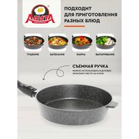 Сковорода антипригарная 22 см со съемной ручкой глубокая литая алюминиевая с покрытием, Природный камень: сравнение цен, характеристики, фото, актуальное наличие и цены.