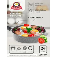 Купить Сковорода антипригарная 24 см со съемной ручкой глубокая литая алюминиевая с покрытием, Природный камень с доставкой по всей России. Сковорода антипригарная 24 см со съемной ручкой глубокая литая алюминиевая с покрытием, Природный камень: сравнение цен, характеристики, фото, актуальное наличие и цены.