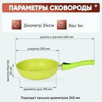 Сковорода антипригарная 24см со съемной ручкой Trendy style lime ТМ KUKMARA: сравнение цен, характеристики, фото, актуальное наличие и цены.