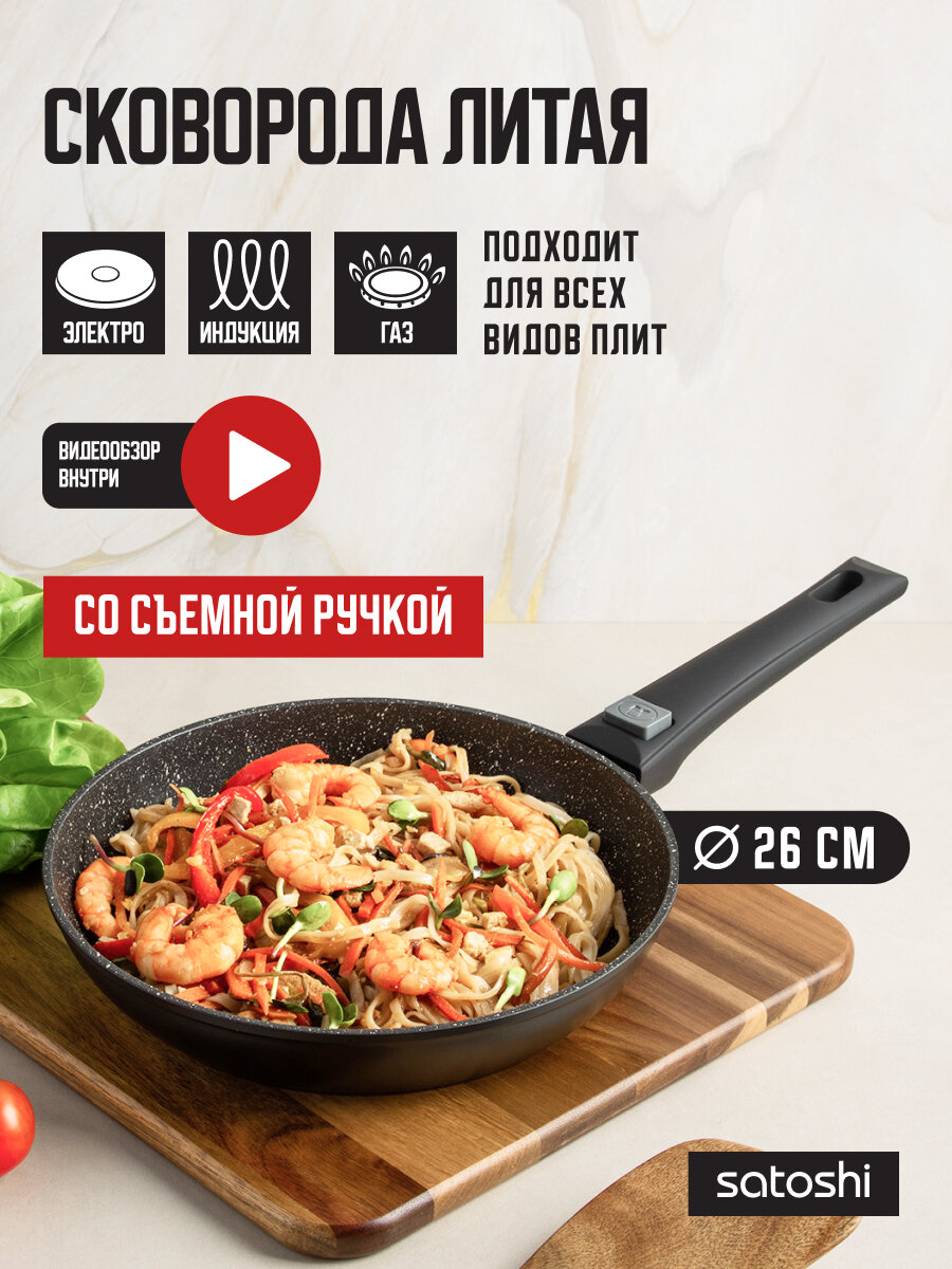 Сковорода антипригарная , 26 см, съемная ручка, подходит для индукции SATOSHI: сравнение цен, характеристики, фото, актуальное наличие и цены.