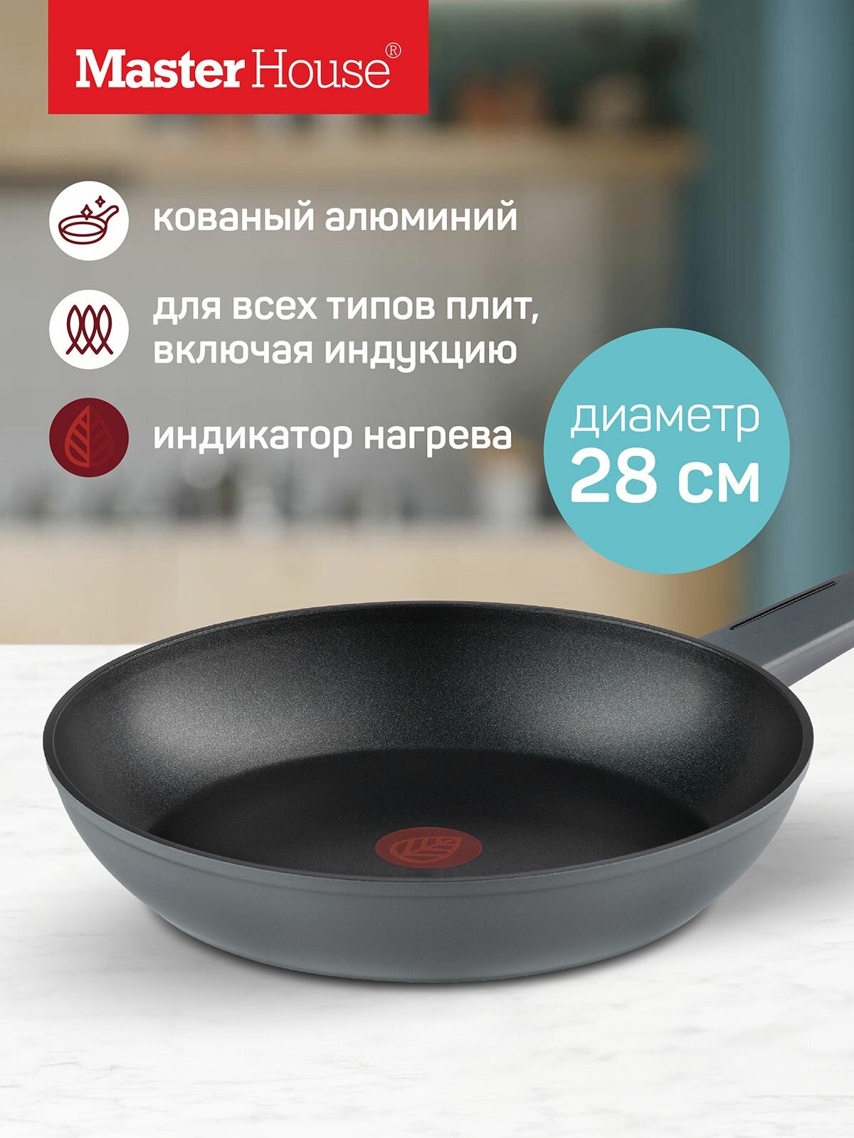 Купить Сковорода антипригарная 28 см индукционная с индикатором нагрева с доставкой по всей России.