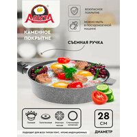 Купить Сковорода антипригарная 28 см со съемной ручкой глубокая литая алюминиевая с покрытием, Природный камень с доставкой по всей России. Сковорода антипригарная 28 см со съемной ручкой глубокая литая алюминиевая с покрытием, Природный камень: сравнение цен, характеристики, фото, актуальное наличие и цены.