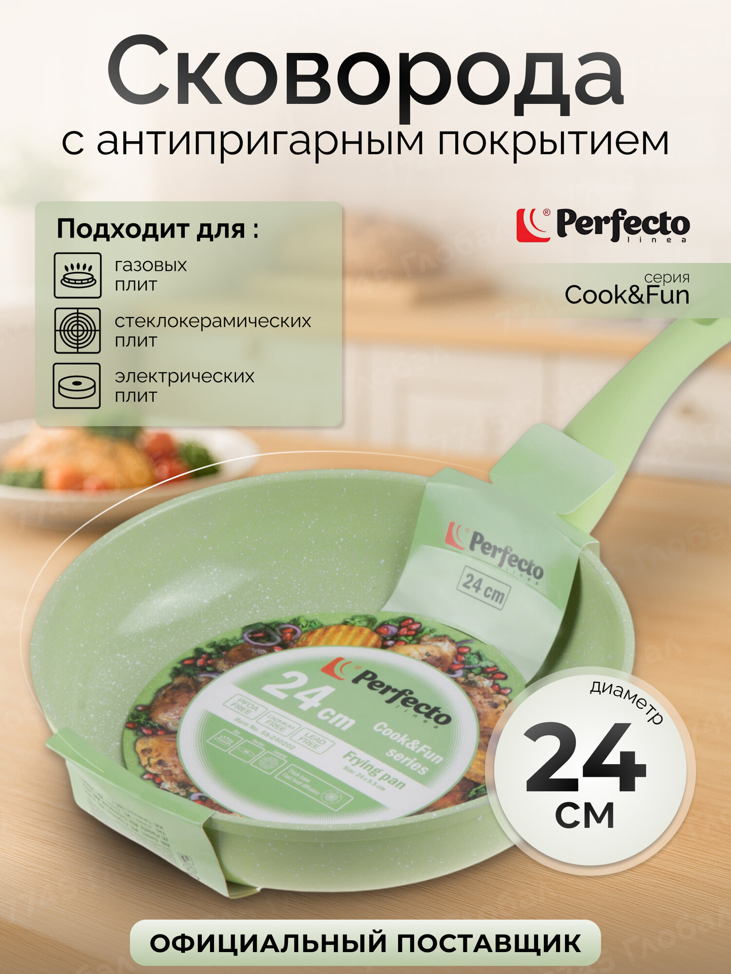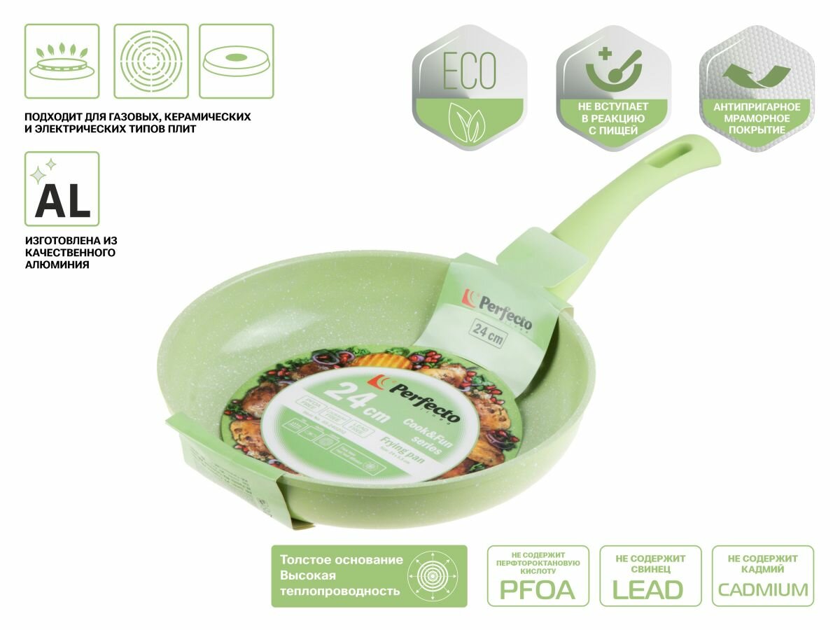 Купить Сковорода антипригарная алюминиевая PERFECTO LINEA Cook&Fun 55-240202, 24 см, зеленая с доставкой по всей России.