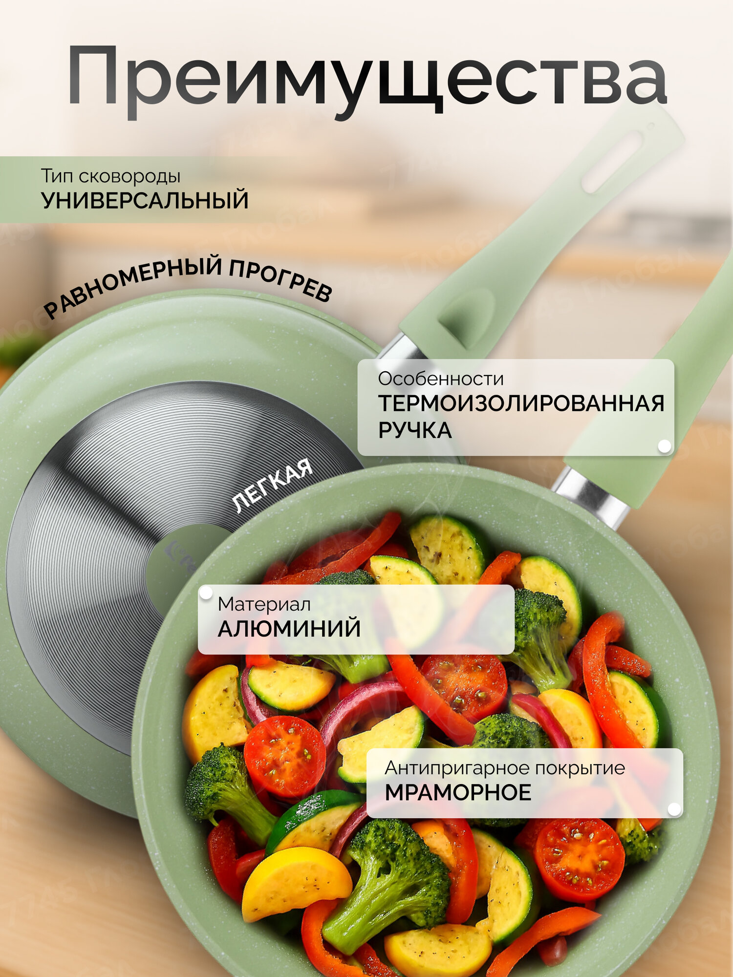 Сковорода антипригарная алюминиевая PERFECTO LINEA Cook&Fun 55-240202, 24 см, зеленая: сравнение цен, характеристики, фото, актуальное наличие и цены.