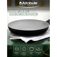 Купить Сковорода антипригарная Attribute GREYSTONE 26 см, с антипригарным покрытием с доставкой по всей России.