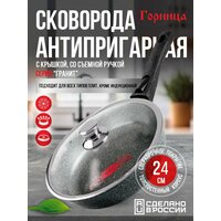 Сковорода антипригарная литая 24 см со съемной ручкой и стеклянной крышкой Гранит ТМ Горница: сравнение цен, характеристики, фото, актуальное наличие и цены.