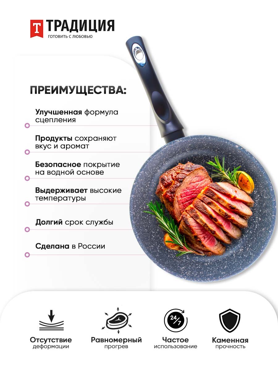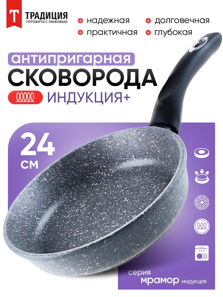 Купить Сковорода антипригарная 24см Мрамор индукция ТМ Традиция готовить с любовью с доставкой по всей России. Сковорода антипригарная 24см Мрамор индукция ТМ Традиция готовить с любовью: сравнение цен, характеристики, фото, актуальное наличие и цены.