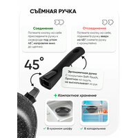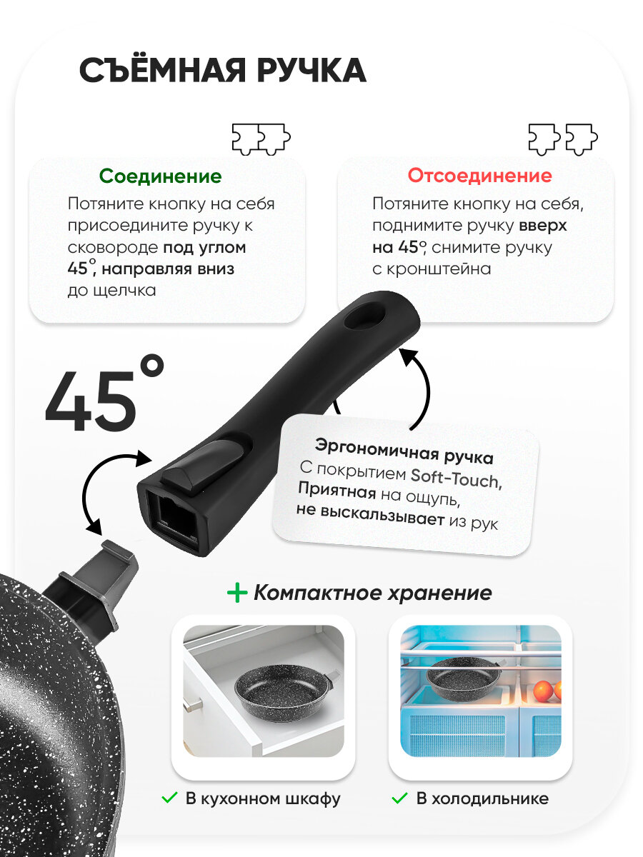 использование в духовке, мытье в посудомоечной машине, съемная ручка, термоизолированная ручка