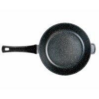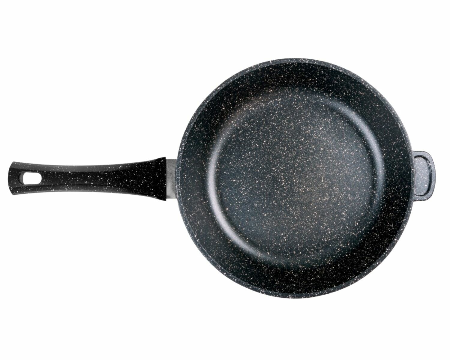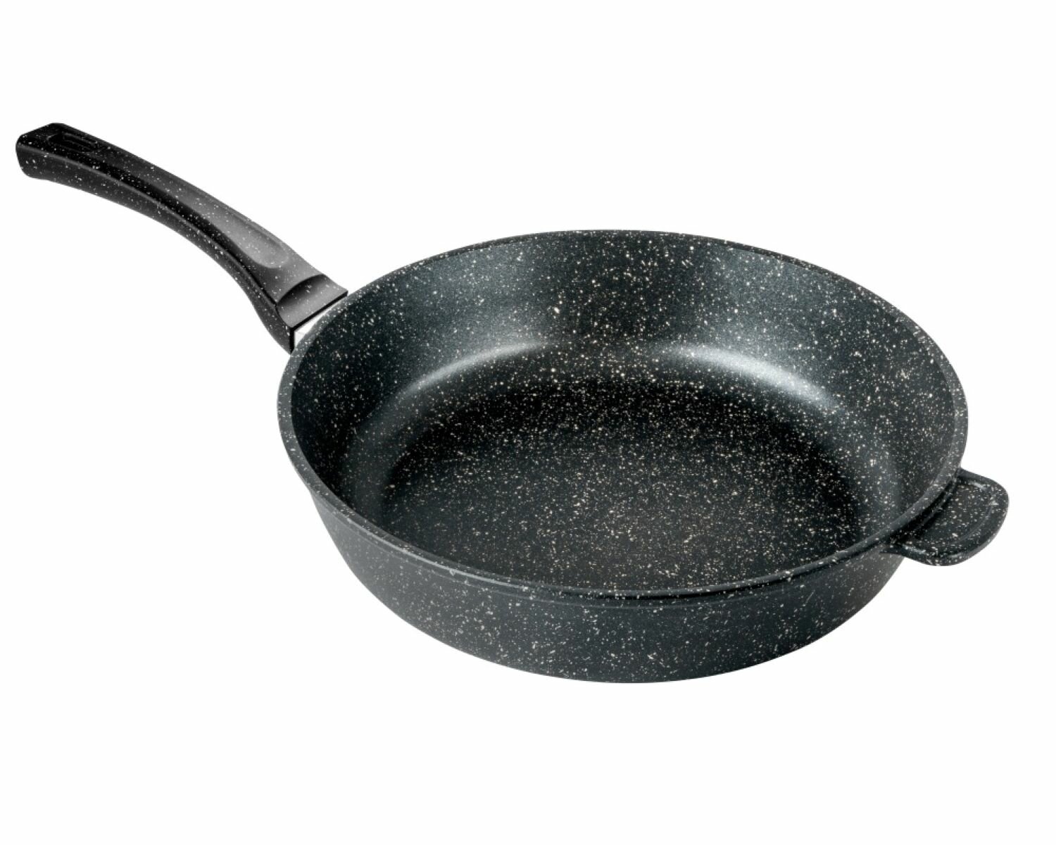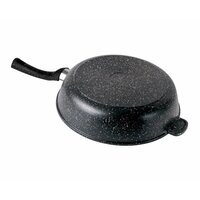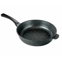 Сковорода "Гранит" от ТМ Горница - это удобная классическая сковорода и главная помощница на кухне. Она идеально подходит как для жарки, так и для тушения. Мясо, птицу, овощи, рыбу – в такой посуде можно приготовить любые продукты, и, благодаря толстому дну корпуса, блюда получаются сочными и ароматными. Сковорода изготовлена из пищевого алюминия без вредных примесей и имеет улучшенное антипригарное покрытие с мраморным эффектом, что увеличивает ее износостойкость и создает оттенок черного мрамора. Высокие стенки и утолщенное дно способствуют равномерному распределению тепла, что создает идеальные условия для приготовления пищи. Сковорода имеет гладкую поверхность, и покрыта современным износостойким покрытием, благодаря чему можно готовить с минимальным количеством масла. Заботьтесь о своем здоровье и здоровье близких! За сковородой легко ухаживать: она легко моется вручную, также ее можно мыть в посудомоечной машине. Ручка из бакелита не нагревается, имеет бархатное покрытие soft-touch. Она не выскальзывает из рук и надежно закреплена, чтобы выдерживать вес сковороды, наполненной продуктами. Сковорода подходит для всех типов плит (газовой, стеклокерамической, электрической), кроме индукционной. Для продления срока службы изделия мы рекомендуем использовать деревянные, пластиковые и силиконовые кухонные аксессуары. Сковорода серии "Гранит" - это отличный подарок, как для себя, так и для других. Эта посуда не только функциональна и долговечна, но и обладает стильным дизайном, который украсит любую кухню и везде подойдет. Если Вы ищете подарок для себя или для кого-то из близких, то посуда линии "Гранит" от ТМ Горница - это прекрасный выбор!