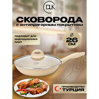 Купить Сковорода антипригарная с крышкой 26 см для индукционных плит DLK с доставкой по всей России.