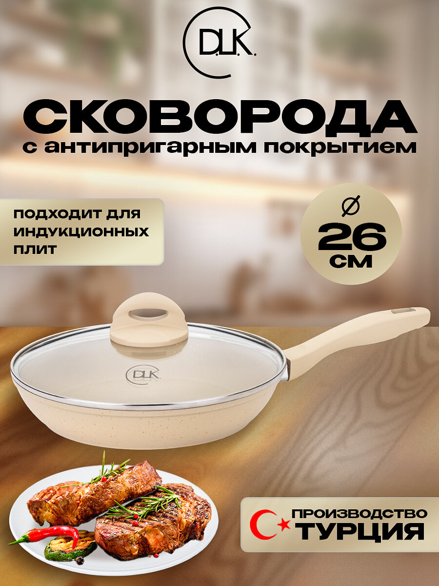 Сковорода антипригарная с крышкой 26 см для индукционных плит DLK: сравнение цен, характеристики, фото, актуальное наличие и цены.