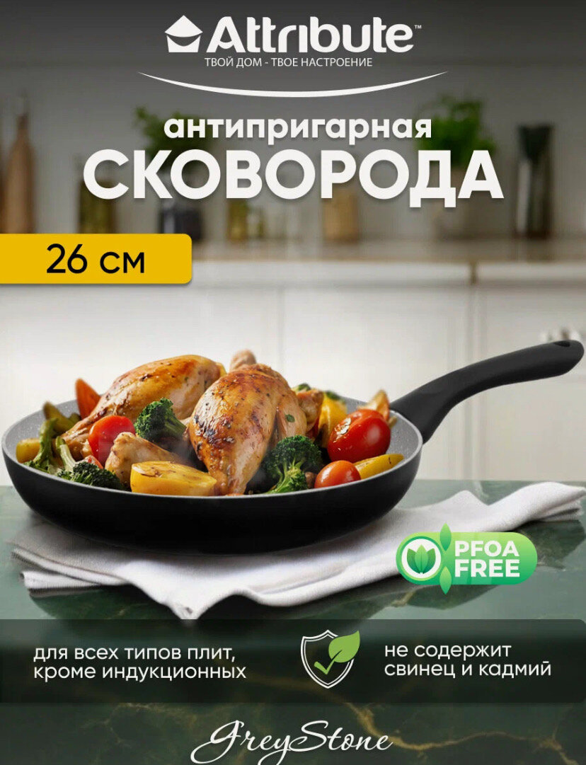 Купить Сковорода ATTRIBUTE «GREYSTONE», алюминий, антипригарная, 26см с доставкой по всей России. Сковорода ATTRIBUTE «GREYSTONE», алюминий, антипригарная, 26см: сравнение цен, характеристики, фото, актуальное наличие и цены.