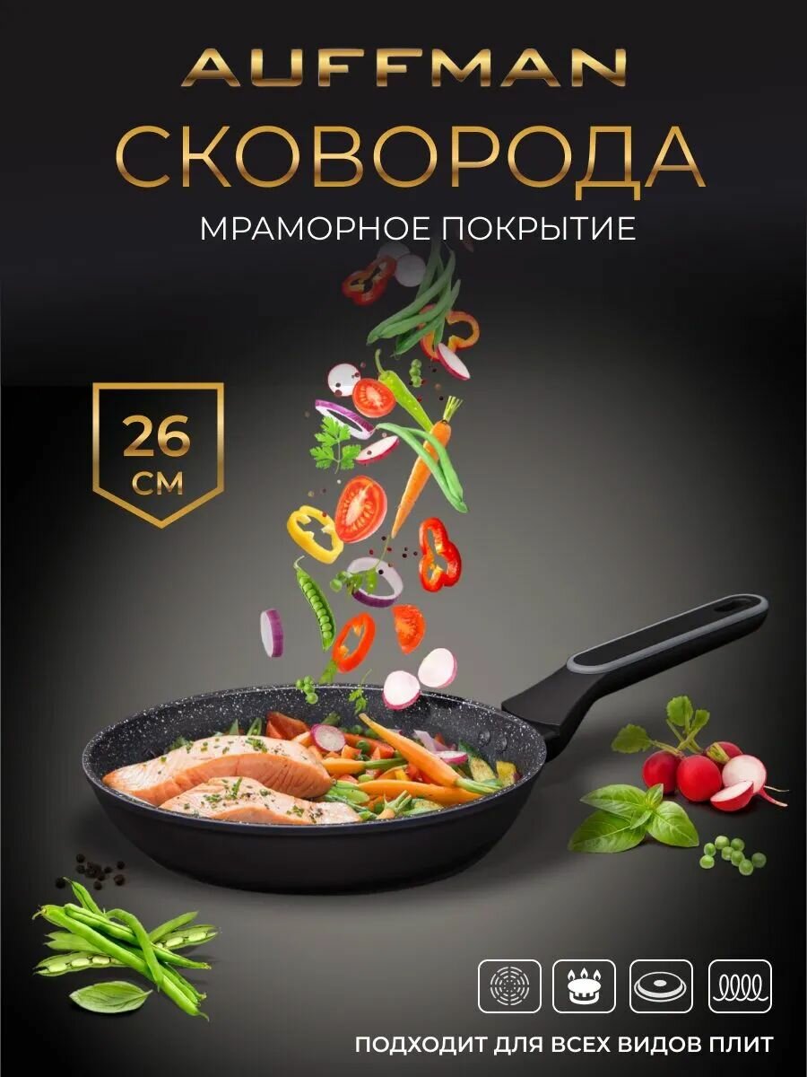 Купить Сковорода 26 см с мраморным покрытием ручка с покрытием soft-touch для газовой, электрической и индукционной плиты с доставкой по всей России. Сковорода 26 см с мраморным покрытием ручка с покрытием soft-touch для газовой, электрической и индукционной плиты: сравнение цен, характеристики, фото, актуальное наличие и цены.
