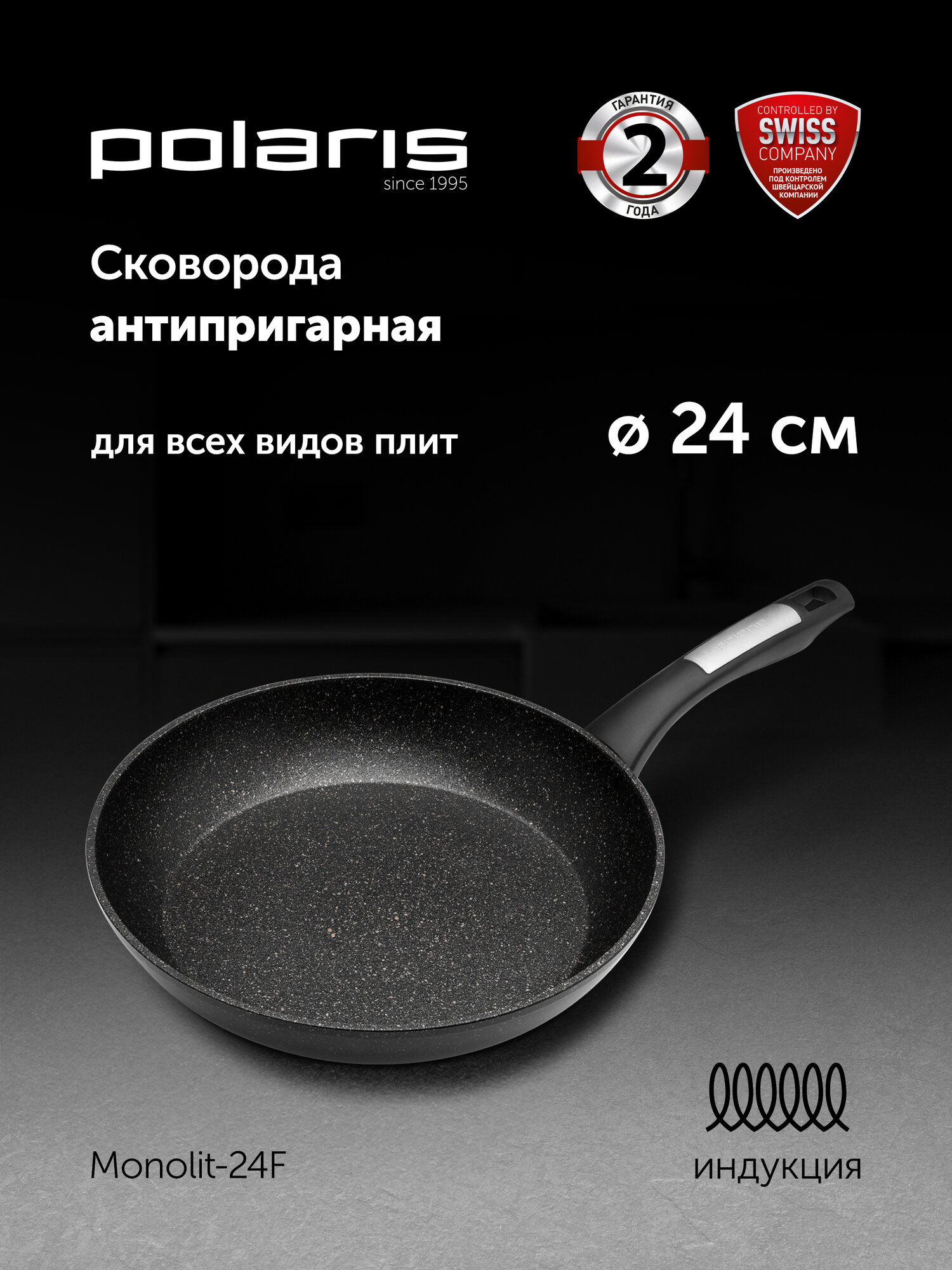 Сковорода Polaris Monolit-24F диаметр 24 см без крышки с антипригарным покрытием, подходит для индукционной плиты: сравнение цен, характеристики, фото, актуальное наличие и цены.