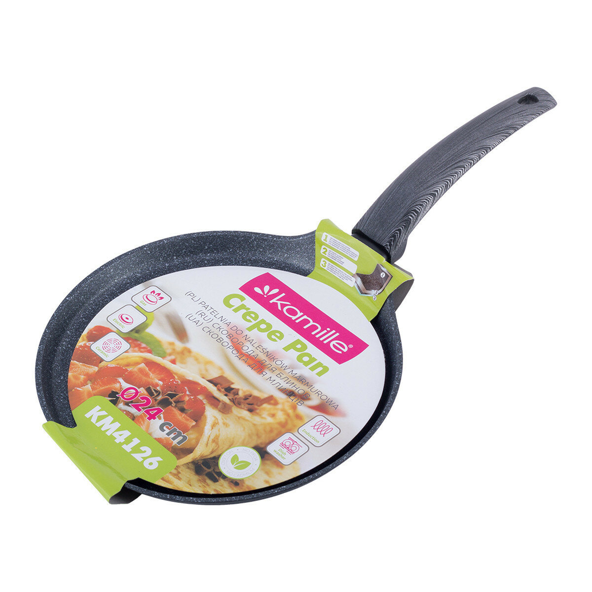 Купить Сковорода блинная 24 см. из кованного алюминия Kamille КМ-4126 с мраморным покрытием (24 см. / черный) с доставкой по всей России.
