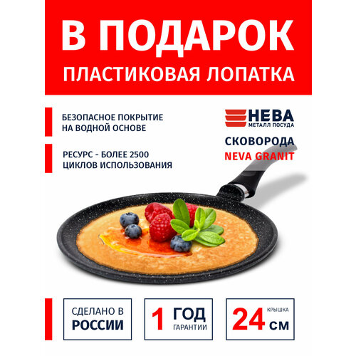 Купить Сковорода блинная 24см нева металл посуда Neva Granite с антипригарным покрытием, Россия + Лопатка в подарок с доставкой по всей России. Сковорода блинная 24см нева металл посуда Neva Granite с антипригарным покрытием, Россия + Лопатка в подарок: сравнение цен, характеристики, фото, актуальное наличие и цены.