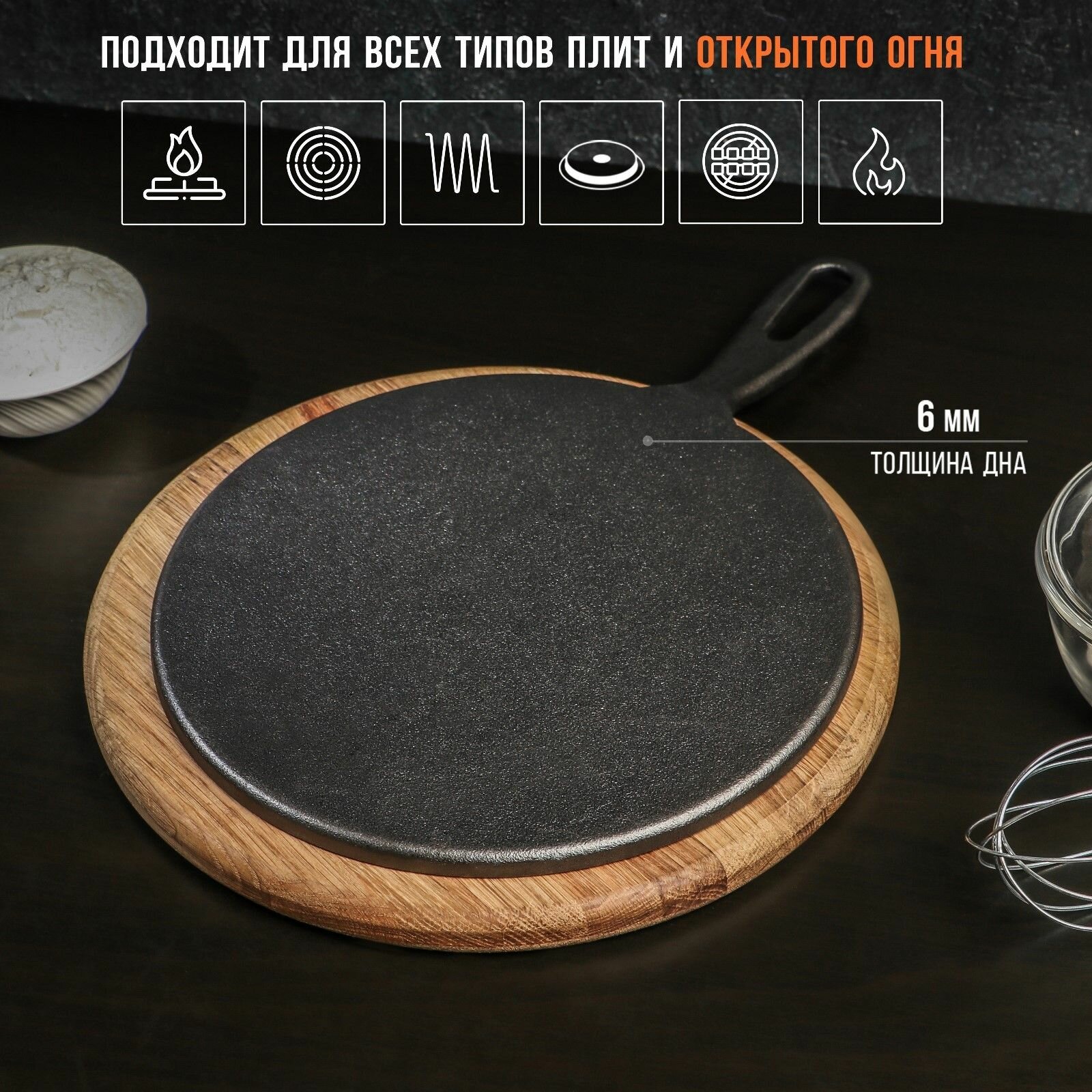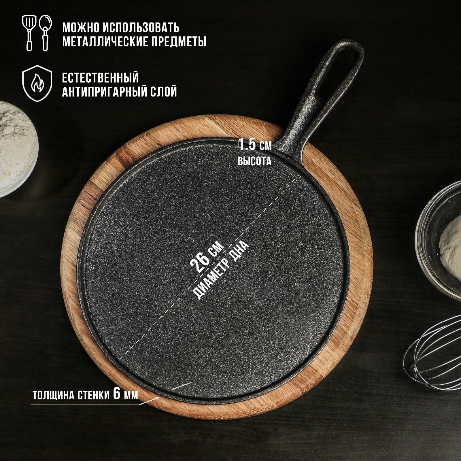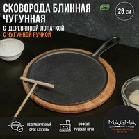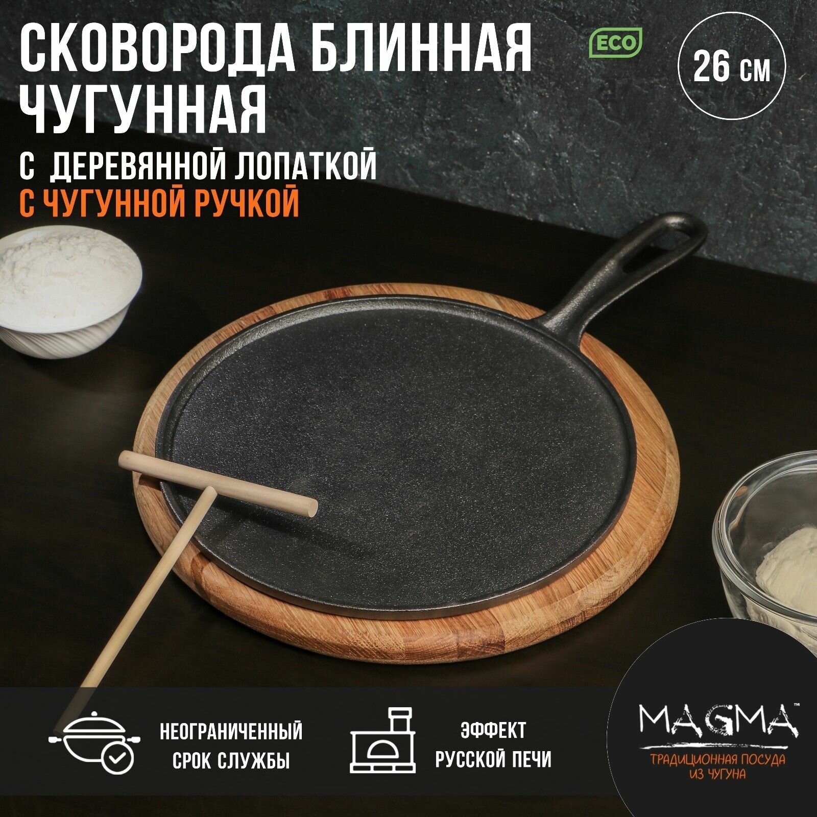 Купить Сковорода блинная чугунная Magma «Традиция», размер 26х1,5 см, с деревянной лопаткой с доставкой по всей России.